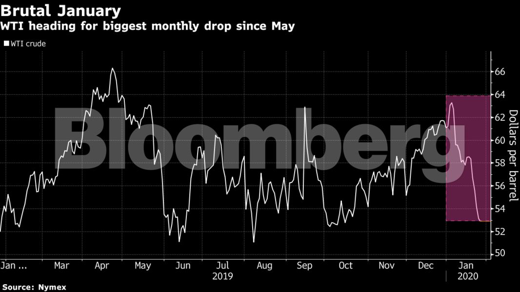 “Τα μεσοπρόθεσμα συμβόλαια του Δυτικού Τέξας για την παράδοση του Μαρτίου δεν άλλαξαν παρά ελάχιστα, καθώς είναι στα 53,13 δολάρια το βαρέλι στο Χρηματιστήριο Εμπορευμάτων της Νέας Υόρκης από τις 2:35 μ.μ. στη Σιγκαπούρη, αφού υποχώρησε έως και 0,7% νωρίτερα. Τα συμβόλαια έκλεισαν στις 53,14 δολάρια τη Δευτέρα, ύψος που είναι το χαμηλότερο από τις 15 Οκτωβρίου 2019. Μέχρι στιγμής, η τιμή έχει μειωθεί γύρω στο 12% τον Ιανουάριο και συνεπώς μιλάμε για τη μεγαλύτερη μηνιαία πτώση από τον περασμένο Μάιο.
