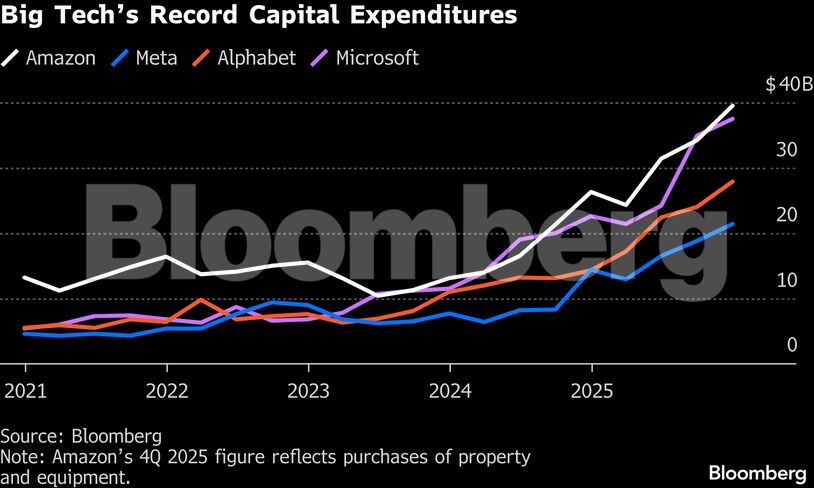 Η Amazon, την επόμενη μέρα, ξεπέρασε αυτό το ποσό με προγραμματισμένες κεφαλαιουχικές δαπάνες 200 δισεκατομμυρίων δολαρίων για το 2026, προκαλώντας επίσης πτώση των μετοχών της.