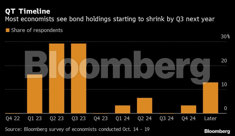 Η επόμενη αναμενόμενη αύξηση των επιτοκίων το Δεκέμβριο αναμένεται να κυμανθεί στις 50 μονάδες βάσεις ενώ, σύμφωνα με τους αναλυτές, η κεντρική τράπεζα θα προχωρήσει σε δύο ακόμα αυξήσεις των επιτοκίων της πριν σταματήσει τη σύσφιξη της νομισματικής της πολιτικής.
