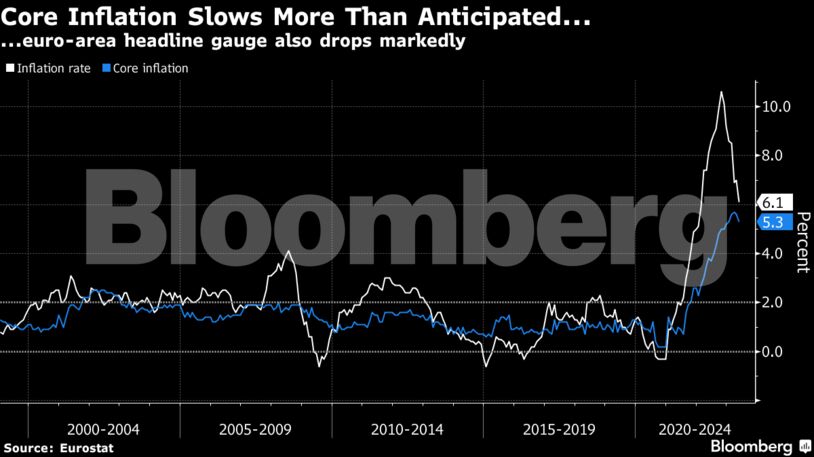 Ο πληθωρισμός στην Ευρωζώνη κατέγραψε μεγαλύτερη από την αναμενόμενη μείωση, αν και οι αναλυτές πιστεύουν πως δε θα είναι αρκετή για να οδηγήσει στο πάγωμα της αύξησης των επιτοκίων από την ΕΚΤ.