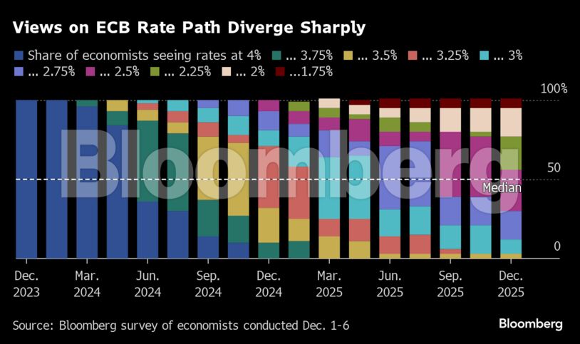 Παράλληλα, η κίνηση αυτή θα ήταν επίσης σύμφωνη με τις προοπτικές των οικονομολόγων όσον αφορά την πορεία των επιτοκίων, σύμφωνα με έρευνα του Bloomberg. Οι ειδικοί προβλέπουν πως η πρώτη εκ των τριών μειώσεων των επιτοκίων θα λάβει χώρα τον Ιούνιο του 2024 και θα οδηγήσει εν τέλει στην μείωσή τους από το 4% στο 3,25%.