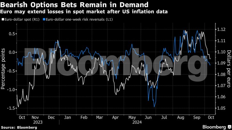 Το ευρώ σημειώνει τη μεγαλύτερη εβδομαδιαία υποχώρηση από τον Ιούλιο στις αγορές δικαιωμάτων προαίρεσης, καθώς οι επενδυτές στοιχηματίζουν ότι η Ευρωπαϊκή Κεντρική Τράπεζα θα μειώσει τα επιτόκια την επόμενη εβδομάδα.