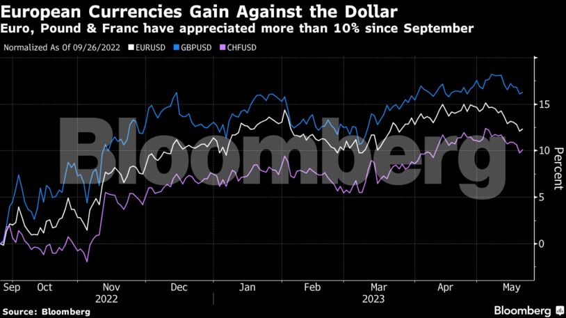 Το Bloomberg Intelligence προβλέπει ότι το ευρώ θα αγγίξει το 1,20 δολάριο έναντι του δολαρίου μέχρι το τέλος του έτους, ενώ η στερλίνα και το ελβετικό φράγκο αναμένεται επίσης να ενισχυθούν έναντι του δολαρίου. Η ανάλυση των τηλεφωνικών κλήσεων των διευθύνοντων συμβούλων από την Barclays, έδειξε ότι λιγότερο από το 40% των εταιρειών έχουν πλέον θετική άποψη για τις συναλλαγματικές ισοτιμίες, από πάνω από 60% το τρίτο τρίμηνο του 2022.