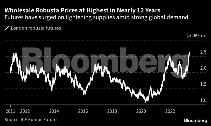 Σύμφωνα με το Bloomberg, οι πιθανότητες μείωσης των τιμών της ποικιλίας robusta στο εγγύς μέλλον είναι περιορισμένες. Η μεγαλύτερη χώρα-παραγωγός robusta του κόσμου, Βιετνάμ, έχει πιθανά συλλέξει τη μικρότερη σοδειά της εδώ και τέσσερα χρόνια, αφού οι αγρότες στη χώρα επέλεξαν πιο προσοδοφόρα γεωργικά προϊόντα όπως ντούριαν και αβοκάντο, λόγω των προβλημάτων στην παγκόσμια αγορά λιπασμάτων τα οποία δημιουργήθηκαν από τον πόλεμο στην Ουκρανία.