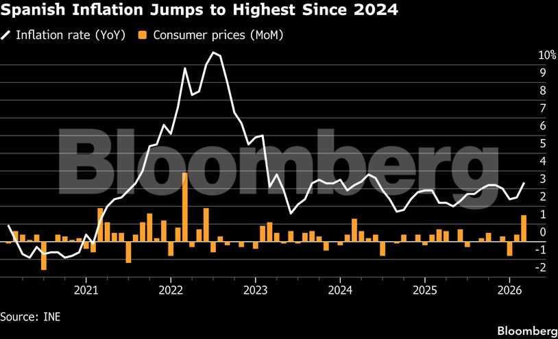 Τα επικαιροποιημένα στοιχεία για τον πληθωρισμό στην Ισπανία — τα πρώτα από μια μεγάλη ευρωπαϊκή οικονομία για τον Μάρτιο — έδειξαν μικρότερη αύξηση από την αναμενόμενη, αν και το ποσοστό παρέμεινε πολύ πάνω από τον στόχο του 2% της ΕΚΤ.