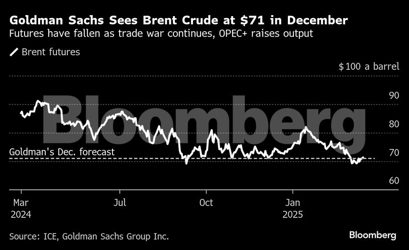 Σε μείωση των προβλέψεών της για τις τιμές του πετρελαίου προχώρησε η Goldman Sachs, καθώς οι δασμοί μειώνουν τις προοπτικές για την ανάπτυξη των ΗΠΑ, ενώ ο ΟΠΕΚ και οι σύμμαχοί του ενισχύουν την παραγωγή.