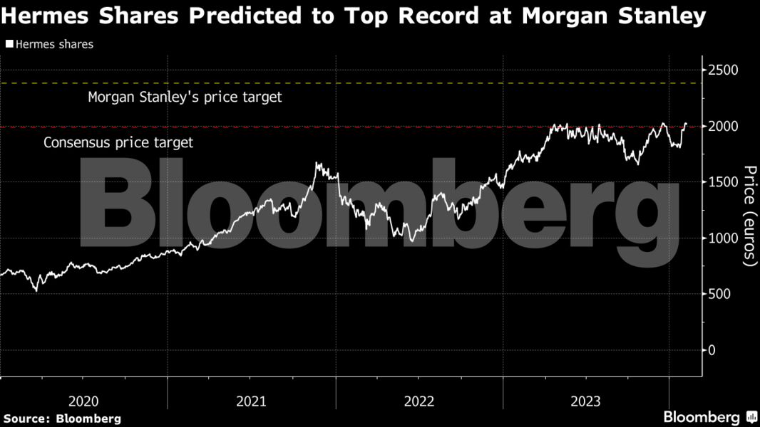 Η τιμή-στόχος του Aubin στα 2.380 ευρώ, που είναι πλέον η υψηλότερη στη Wall Street, συνεπάγεται κέρδη 18% σε σχέση με το κλείσιμο της Τρίτης. O μέσος στόχος των αναλυτών προβλέπει ότι οι μετοχές της Hermès θα υποχωρήσουν περίπου 2% τους επόμενους 12 μήνες.