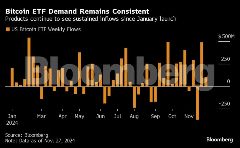 Προς το παρόν, ωστόσο, καθώς η αγορά περιμένει τον Τραμπ και το νέο Κογκρέσο, υπάρχει μια περίοδος μέλιτος κατά την οποία είναι δύσκολο να βρει κανείς πολλούς επενδυτές που είναι αρνητικοί για το bitcoin βραχυπρόθεσμα. Εξάλλου, πρόκειται για ένα περιουσιακό στοιχείο του οποίου η τιμή έχει αυξηθεί από 5 σεντς το 2010 σε σχεδόν 100.000 δολάρια σήμερα και τα ETF έχουν μειώσει μεγάλο μέρος του αντιληπτού κινδύνου που συνεπάγεται η έκθεση σε μια startup όπως η FTX, η οποία κατέρρευσε το 2022 και διέδωσε την κρίση της σε ολόκληρη τη βιομηχανία.