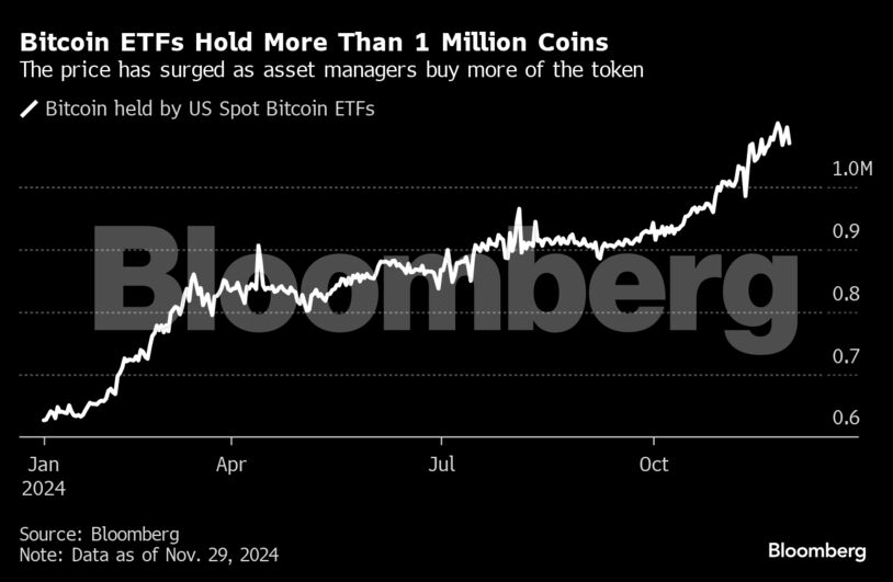 Τα bitcoin ETFs είχαν τόσο μεγάλη επιτυχία στις ΗΠΑ, ώστε έφτασαν να κατέχουν περισσότερα από 1 εκατομμύριο από τα token, δηλαδή περίπου το 5% των σημερινών αποθεμάτων.
