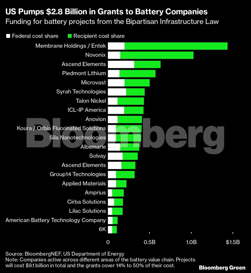 Τα $370 δισεκατομμύρια επενδύσεων στον τομέα της καθαρής ενέργειας τα οποία συμπεριλαμβάνονται στο Inflation Reduction Act και τα επιπλέον δισεκατομμύρια του Infrastructure Investment and Jobs Act θα στηρίξουν την αναπτυξιακή προοπτική των εταιρειών οι οποίες κατασκευάζουν τις μπαταρίες λιθίου αλλά και της νέας γενιάς επιχειρήσεις οι οποίες θα μπορούσαν να φέρουν επανάσταση στα δεδομένα της αγοράς αυτής.