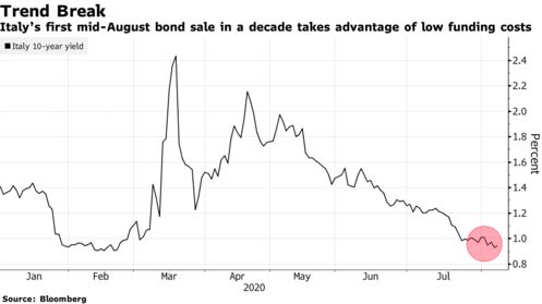 Τον Αύγουστο, οι ευρωπαϊκές κυβερνήσεις συνήθως σταματούν την έκδοση χρέους και οι επενδυτές κάνουν το καθιερωμένο ετήσιο διάλειμμα. Αυτή τη φορά όμως τα πράγματα είναι διαφορετικά, τουλάχιστον στην Ιταλία.