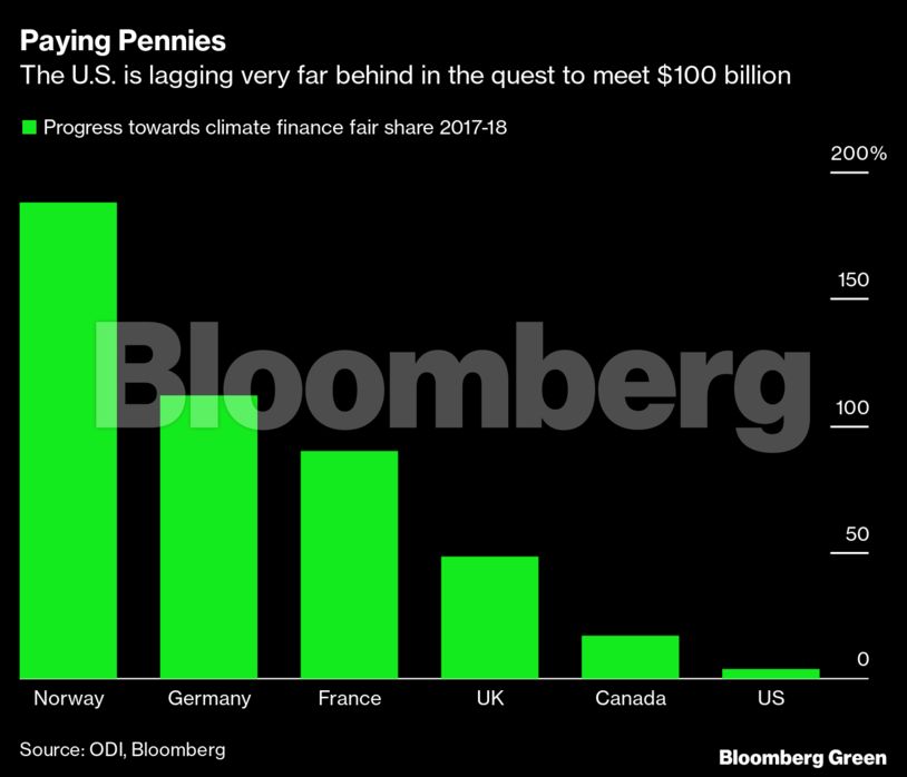 Εκ των 23 χωρών που χρηματοδοτούν την προσπάθεια, μόνο η Γερμανία, η Σουηδία και η Νορβηγία έχουν επιτύχει τους επενδυτικούς στόχους τους, σύμφωνα με την ανάλυση της ODI. H συνολική χρηματοδότηση άγγιξε μόλις τα $79,6 δισ το 2019, ενώ το 70% του ποσού βασιζόταν σε δάνεια, φαινόμενο που θα συνεχιστεί σύμφωνα με την Οxfam.
