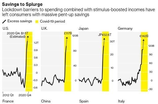 Κατά τη διάρκεια της πανδημίας, οι πολίτες κατάφεραν να αποταμιεύσουν 2,9 τρισεκατομμύρια δολάρια. Υποστηρίζεται πως τα χρήματα αυτά θα αποτελέσουν σανίδα σωτηρίας για την παγκόσμια οικονομία η οποία όπως εκτιμάται θα παρουσιάσει ταχύτατη ανάκαμψη αμέσως μόλις σημάνει η λήξη της πανδημίας.