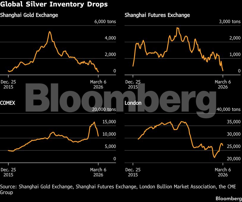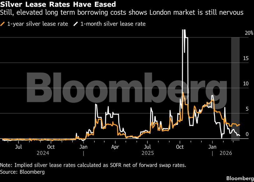 Παρά τη ζήτηση στην Κίνα, η αγορά του Λονδίνου δεν έχει διαταραχθεί, χάρη στην αυξημένη εισροή ασημιού μετά από τη σπάνια έλλειψη της προηγούμενης χρονιάς και την πτώση των ETFs κατά 1.900 τόνους φέτος. Οι μακροπρόθεσμοι όροι δανεισμού ασημιού παραμένουν υψηλοί λόγω μεταβλητότητας, ενώ τα ορατά αποθέματα από Νέα Υόρκη έως Σαγκάη βρίσκονται κάτω από τον μέσο όρο, δείχνοντας ότι το μέταλλο παραμένει σπάνιο.