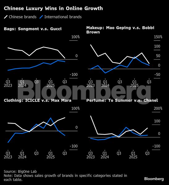 Οι διαδικτυακές πλατφόρμες λιανικής διαδραμάτισαν καθοριστικό ρόλο στην ανάπτυξή τους. Σύμφωνα με δεδομένα της BigOne Lab, πέντε εγχώριες φημισμένες μάρκες με τσάντες, ρούχα, αρώματα, καλλυντικά και κοσμήματα ξεπέρασαν επτά ξένους ανταγωνιστές σε ρυθμούς ανάπτυξης τα τελευταία δύο χρόνια. Οι πωλήσεις του Laopu Gold εκτοξεύθηκαν πάνω από 1.000% στα τρία πρώτα τρίμηνα σε σχέση με δύο χρόνια πριν, ενώ το Songmont αύξησε τις online πωλήσεις τσαντών κατά περίπου 90%. Την ίδια στιγμή, οι online πωλήσεις τσαντών της Gucci στην Κίνα υποχώρησαν πάνω από 50% και της Michael Kors κατά 40%.