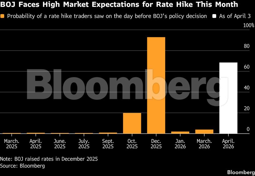 Τα μηνύματα της Τράπεζας της Ιαπωνίας έχουν δώσει στους επενδυτές την εντύπωση ότι τα στελέχη τους θα αυξήσουν το βασικό επιτόκιο αυτό το μήνα, παρότι οι αρχές αναφέρουν τη σύγκρουση στη Μέση Ανατολή ως πηγή αβεβαιότητας, με βασικό ερώτημα να αποτελεί το αν θα στείλει ένα σαφές μήνυμα.