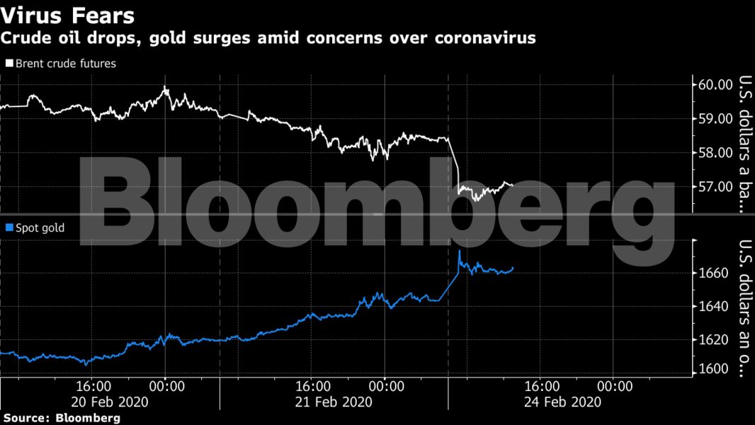 Νέοι φόβοι ότι η επιδημία του κορωνοϊού θα βλάψει την παγκόσμια ανάπτυξη συγκλόνισε τις αγορές βασικών προϊόντων και πάλι τη Δευτέρα, με τις τιμές του πετρελαίου και των μετάλλων να κατρακυλούν, ενώ ο χρυσός ανέβηκε στα 1.700 δολάρια η ουγγιά.
