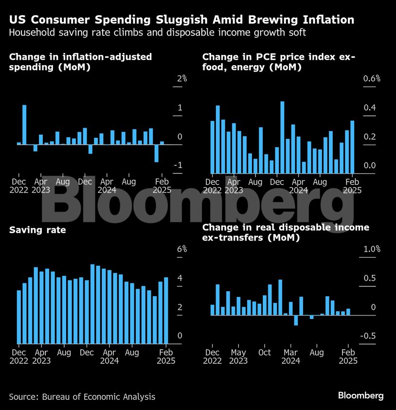 Η καταναλωτική δαπάνη στις Ηνωμένες Πολιτείες ήταν και πάλι χαμηλότερη των προσδοκιών τον Φεβρουάριο, ενώ ένας βασικός δείκτης πληθωρισμού σημείωσε άνοδο, προκαλώντας «διπλό πλήγμα» στην αμερικανική οικονομία, λίγο πριν αρχίσουν να εφαρμόζονται οι νέοι δασμοί.