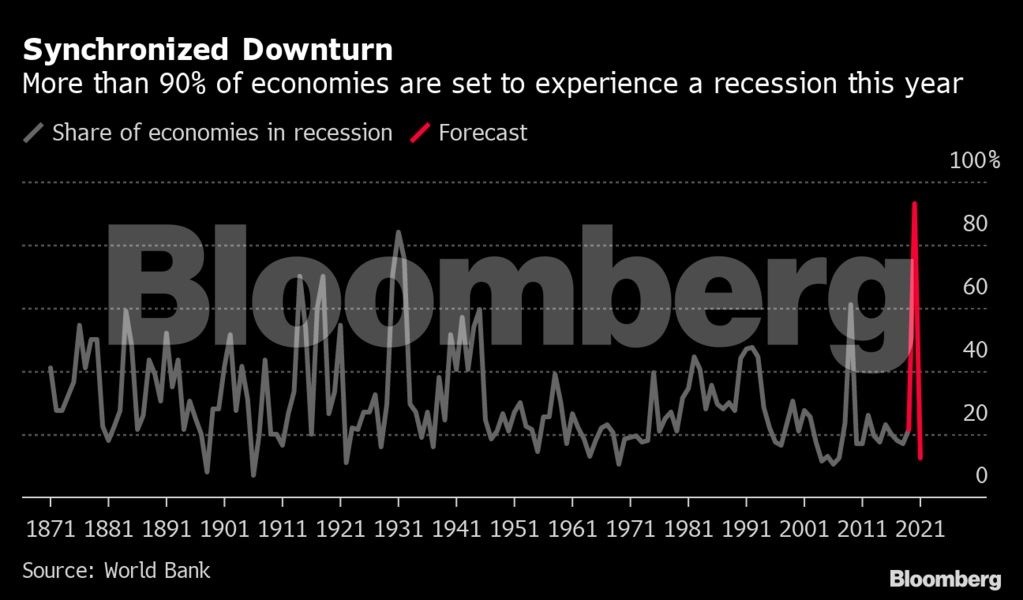 Είναι πλέον πιθανό ότι το παγκόσμιο ΑΕΠ στα τέλη του 2021 θα είναι σε πολλές περιπτώσεις χαμηλότερο από το επίπεδο που είχε στο τέλος του 2019, σύμφωνα με τους οικονομολόγους της HSBC Holdings Plc με επικεφαλής την Τζάνετ Χένρι. Το Bloomberg Economics έχει αποδόσει αυτή την εκτίμηση με τη φράση “Goodbye Victory V, Hello Worry W”.