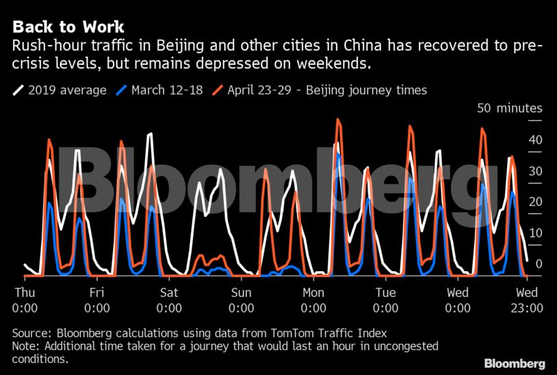 Η καθημερινή κίνηση στην κινεζική πόλη έχει σχεδόν επιστρέψει στα επίπεδα πριν από την κρίση, αν και παραμένει σε ύφεση τα σαββατοκύριακα. Επιστρέφει εντελώς στο κανονικό κατά τις ώρες αιχμής και σε άλλες μεγάλες πόλεις, όπως το Πεκίνο, το Γκουάνγκτζου και την Σαγκάη, σύμφωνα με στοιχεία της εταιρείας TomTom International BV.