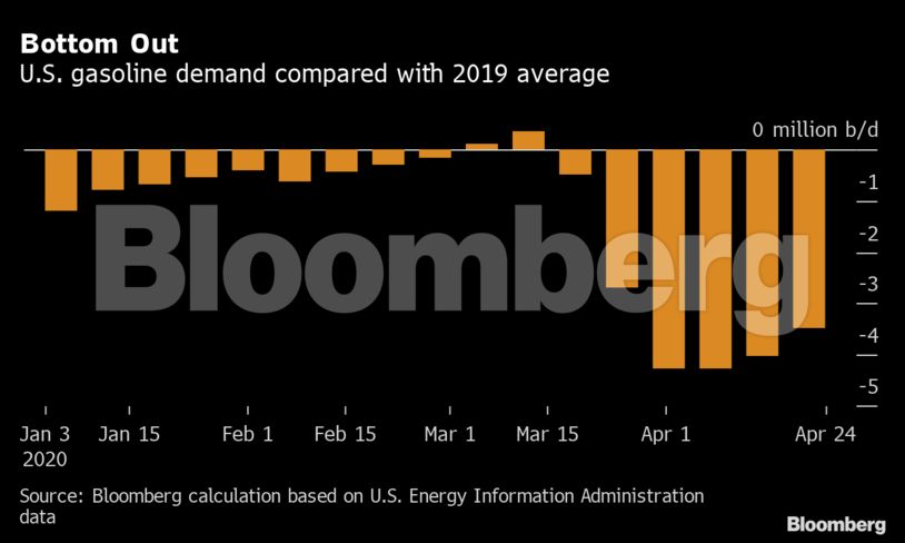 Από τους δρόμους του Σαν Αντόνιο έως τη Βαρκελώνη και το Πεκίνο, σύμφωνα με τα δεδομένα κίνησης, τις πωλήσεις σε πρατήρια καυσίμων και τις ροές των αγωγών, φαίνεται ότι η πτώση της ζήτησης πετρελαίου πιθανότατα έπιασε πάτο στα μέσα Απριλίου ενώ τώρα ξεκινάει μια μέτρια άνοδο.