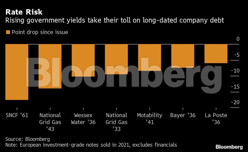 Οι αγοραστές νέων εταιρικών ομολόγων «γράφουν» ήδη ζημίες λόγω των πληθωριστικών φόβων που οδηγούν τις αποδόσεις των κρατικών ομολόγων στα ύψη.