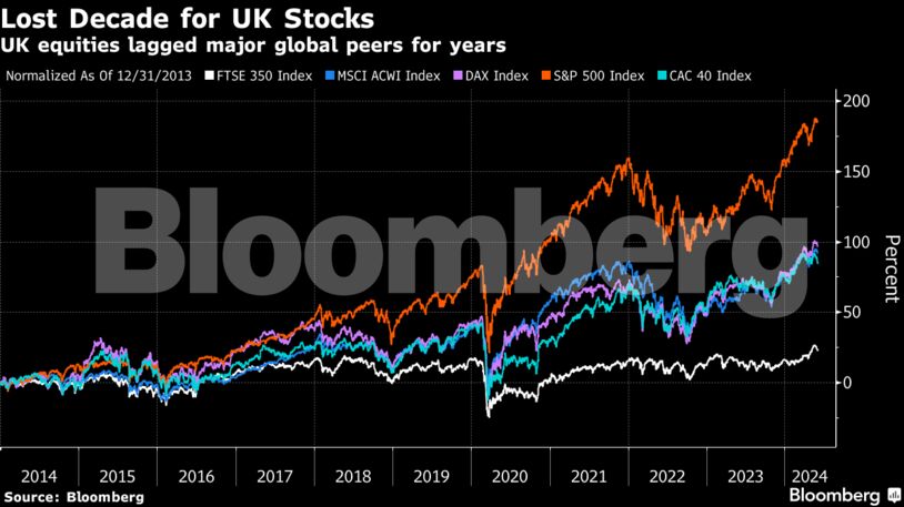 Παρ’ όλα αυτά, οι βρετανικές μετοχές εξακολουθούν να διαπραγματεύονται κοντά σε χαμηλό ρεκόρ έναντι των παρεμφερών μετοχών στις ανεπτυγμένες αγορές, ακόμη και με διπλάσια μερισματική απόδοση, σύμφωνα με στοιχεία που συγκέντρωσε το Bloomberg.