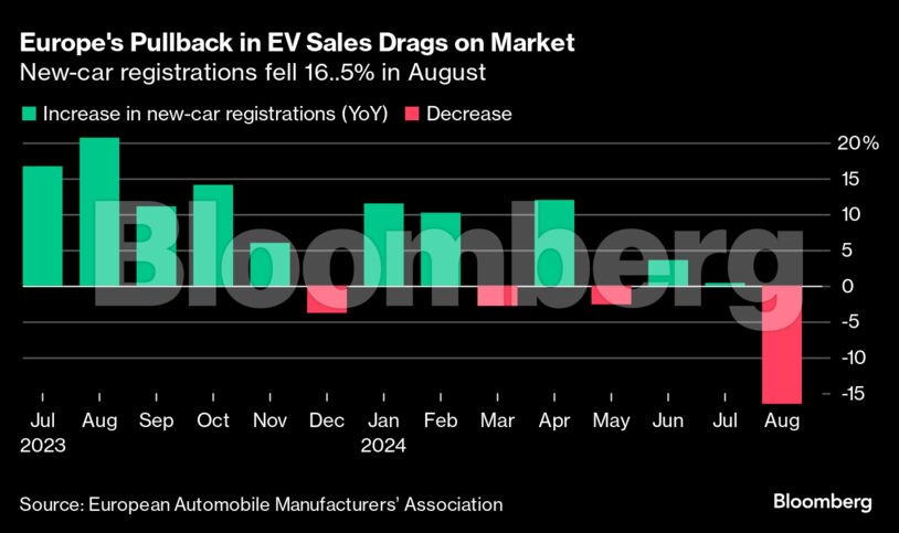 Καθώς οι κυβερνήσεις αποσύρουν τα δαπανηρά κίνητρα, η ζήτηση για EV υποχωρεί με τη Γερμανία να ηγείται μιας πανευρωπαϊκής επιβράδυνσης. Το μερίδιο αγοράς των αυτοκινήτων με μπαταρία συρρικνώθηκε στο 14% μέχρι τον Αύγουστο.