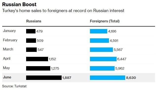 Αποτέλεσμα είναι οι Ρώσοι να αποτελούν τη μεγαλύτερη υπο-ομάδα ανάμεσα στους ξένους αγοραστές του τουρκικού real estate.