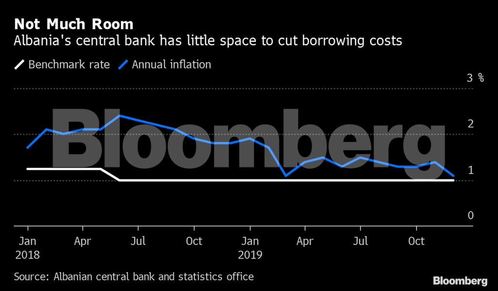 Παρόμοιες συνέπειες της ευρωπαϊκής στάσης εμφανίζονται και στην Αλβανία. Δεδομένου ότι η μείωση του επιτοκίου αναφοράς στο 1% έγινε στα μέσα του 2018, η κεντρική τράπεζα δεν έχει πλέον πολλά περιθώρια ελιγμών. Έχει δει το λεκ, το τοπικό νόμισμα, να ενισχύεται έναντι του ευρώ, ακόμη και όταν η οικονομική ανάπτυξη στη χώρα επιβραδύνεται. Και ο πληθωρισμός, ο οποίος έχει ξεπεράσει τον στόχο της κεντρικής τράπεζας από το 2011, επιβραδύνθηκε στα τέλη του περασμένου έτους.