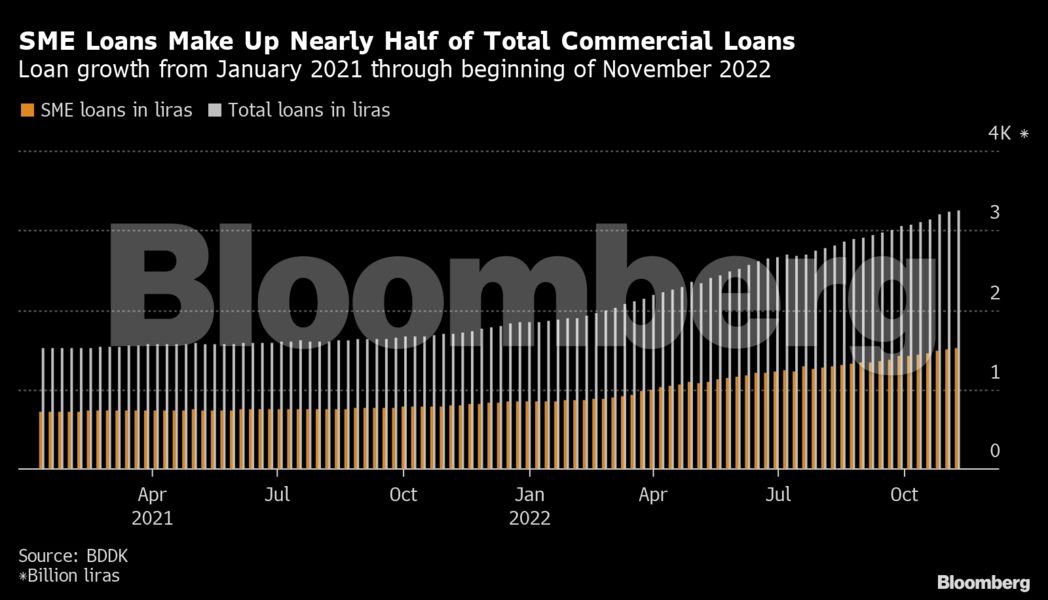Όπως εξηγεί το Bloomberg, oι ρυθμιστικές αρχές αναγκάζουν τις εμπορικές τράπεζες να δώσουν προτεραιότητα στους εξαγωγείς και στις μικρότερες επιχειρήσεις στις οποίες απασχολείται σχεδόν 66% του ανθρώπινου δυναμικού δυναμικού της χώρας. Τα νέα δάνεια σε λίρες για μικρότερες επιχειρήσεις αυξήθηκαν σχεδόν 10 φορές σε ετήσια βάση κατά τους πρώτους 10 μήνες του 2022, σε σύγκριση με την επταπλάσια αύξηση για τις μεγάλες εταιρείες, σύμφωνα με την κεντρική τράπεζα.