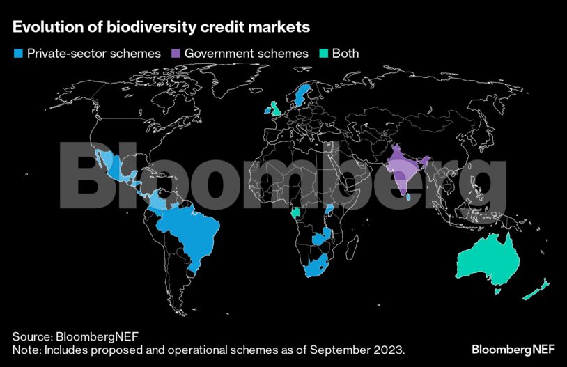 Τα νέα προϊόντα που διερευνούν οι τραπεζίτες περιλαμβάνουν πιστώσεις βιοποικιλότητας. Αυτές θα λειτουργούσαν με παρόμοιο τρόπο με τα carbon credits, έτσι ώστε οι επενδυτές να μπορούν να αντιμετωπίσουν το πλήγμα στη βιοποικιλότητα επενδύοντας σε έργα διατήρησης και προστασίας της. Ο βετεράνος του κλάδου των hedge funds, Κάιλ Μπας, συγκαταλέγεται στους επενδυτές που έχουν εδραιωθεί σε μια ρυθμιζόμενη εκδοχή αυτής της αγοράς στις ΗΠΑ.