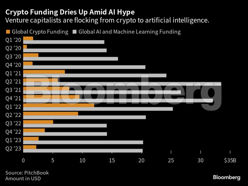 Κατά τη διάρκεια του πρόσφατου τριμήνου, οι VCs επένδυσαν λιγότερα στις εταιρείες crypto και digital asset management, σύμφωνα με στοιχεία του PitchBook. Παράλληλα, οι επενδύσεις στην τεχνητή νοημοσύνη την περίοδο Απριλίου-Ιουνίου ήταν μεγαλύτερες από το ανώτατο, αντίστοιχο, ρεκόρ της αγοράς των crypto.
