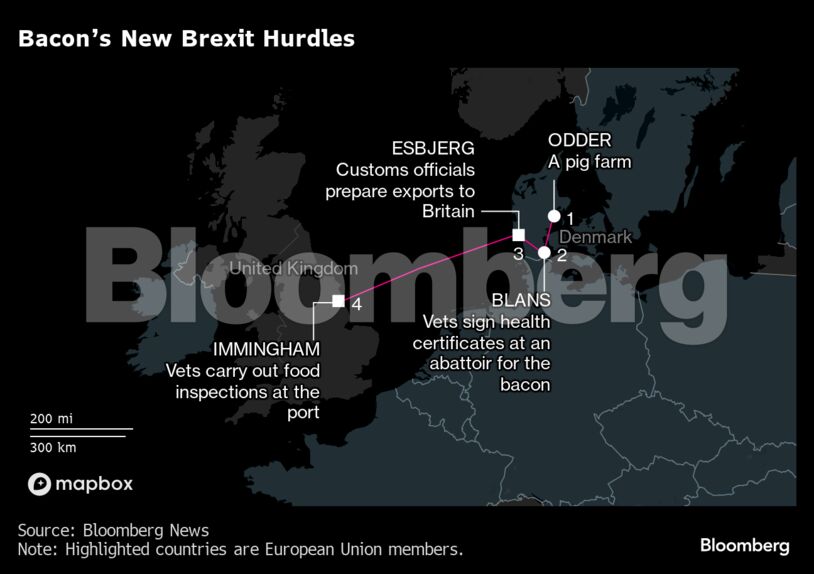 Η Danish Crown, η οποία εξάγει 1.000 τόνους μπέικον την εβδομάδα στο Ηνωμένο Βασίλειο, δήλωσε ότι προετοιμάζεται για τους ελέγχους εδώ και πολύ καιρό. Χωρίς προοπτική να απομακρυνθεί από την πιο σημαντική αγορά μπέικον της περιοχής, η εταιρεία είναι βέβαιη ότι θα τα καταφέρει, όπως δήλωσε στο Bloomberg το ανώτατο στέλεχος της εταιρείας, Λαρς Άλμπερτσεν.
