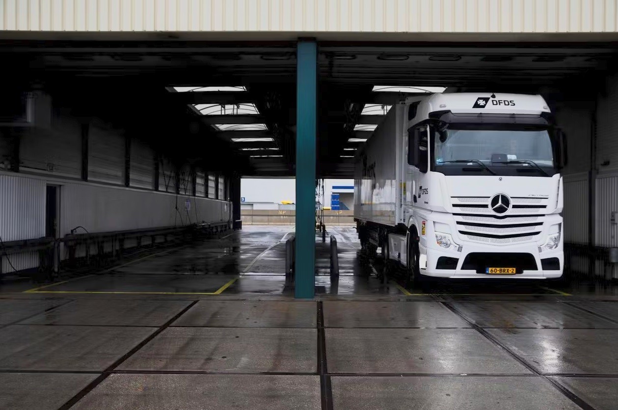 Ο κυκεώνας αυτός αποτελεί υπενθύμιση ότι το Brexit έχει ανατρέψει το εμπόριο και για τις εισαγωγές προς την Ε.Ε. Το απόγευμα κάθε ημέρας που περνά, η προσοχή μετατοπίζεται στα δεκάδες φορτηγά που φορτώνουν περίπου 180 ρυμουλκούμενα τρέιλερ με αγαθά όπως χοιρινό κρέας, έπιπλα και πατατάκια. Η ομάδα του Πέντερσεν ελέγχει τις μονάδες για τα σωστά τελωνειακά έγγραφα. Το μπέικον της Danish Crown φορτώνεται σε ρυμουλκούμενα με ελεγχόμενη θερμοκρασία, όπου συνεχίζει να ωριμάζει καθώς ταξιδεύει μέσω της Βόρειας Θάλασσας.