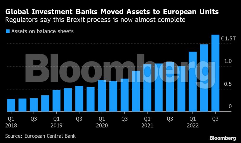 Από το 2018, εννέα από τις μεγαλύτερες τράπεζες του κόσμου έχουν εξαπλασιάσει τα περιουσιακά τους στοιχεία τα οποία διαχειρίζονται τα γραφεία τους στην Ευρωζώνη στα 1,7 τρισ. ευρώ, σύμφωνα με στοιχεία της ΕΚΤ. Τα επίσημα στοιχεία υποδεικνύουν πως το μεγαλύτερο κομμάτι εξ αυτών κατέληξε στη Φρανκφούρτη, η οποία έχει γίνει το νέο κέντρο της διαχείρισης ρίσκου της Ε.Ε.