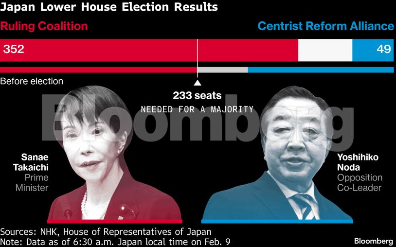 Η πρωθυπουργός της Ιαπωνίας εξασφάλισε τη μεγαλύτερη μεταπολεμική εκλογική νίκη για ένα κόμμα, καθώς το Φιλελεύθερο Δημοκρατικό Κόμμα κατέκτησε 316 έδρες και ο κυβερνητικός συνασπισμός συνολικά 352 από τις 465 της κάτω βουλής, επιτυγχάνοντας πλειοψηφία δύο τρίτων. Η εξέλιξη αυτή σηματοδοτεί μια εντυπωσιακή πολιτική ανατροπή για το LDP, το οποίο πριν από λίγους μήνες είχε χάσει τον έλεγχο και των δύο σωμάτων του κοινοβουλίου.