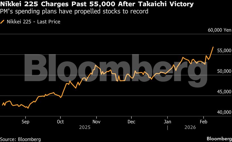 Η εκλογική νίκη ενεργοποίησε το λεγόμενο «Takaichi trade», με τους επενδυτές να προεξοφλούν μεγαλύτερες δημόσιες δαπάνες, επενδύσεις και πιο χαλαρή νομισματική πολιτική. Ο δείκτης Nikkei 225 εκτινάχθηκε έως και 5,7%, ξεπερνώντας για πρώτη φορά τις 57.000 μονάδες, ενώ ο Topix σημείωσε επίσης ιστορικό υψηλό.