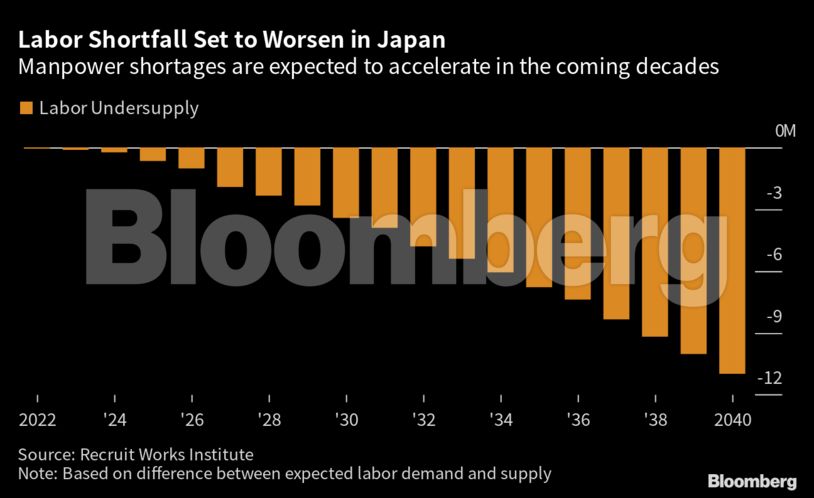 Η Ιαπωνία ενδέχεται να έχει ελλείψεις άνω των 11 εκατομμυρίων εργαζομένων μέχρι το 2040, σύμφωνα με πρόσφατη ανάλυση του Recruit Works Institute, υποδεικνύοντας τις σημαντικές προκλήσεις που πρόκειται να αντιμετωπίσει η τεράστια αυτή ασιατική οικονομία λόγω της αύξησης του μέσου όρου ηλικίας των πολιτών της.