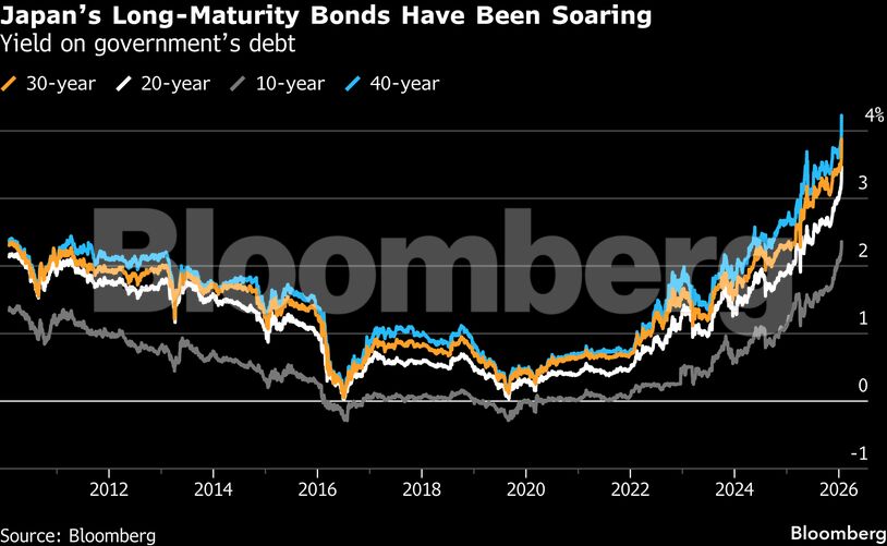Οι αποδόσεις των 30ετών και 40ετών ιαπωνικών κρατικών ομολόγων εκτινάχθηκαν αμφότερες κατά περισσότερες από 25 μονάδες βάσης, καταγράφοντας τη μεγαλύτερη ημερήσια κίνηση από τότε που οι δασμοί της «Ημέρας Απελευθέρωσης» του Ντόναλντ Τραμπ είχαν ταράξει τις παγκόσμιες αγορές πέρυσι.