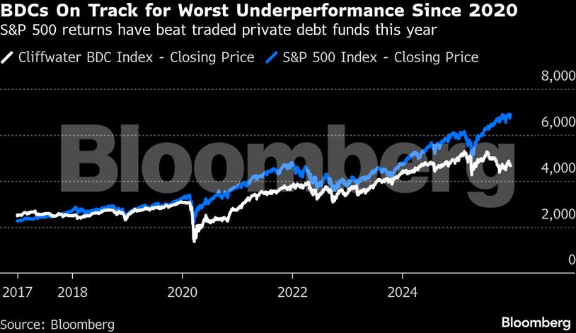 Η δημόσια διαπραγµατευόµενη αγορά ιδιωτικού δανεισµού φαίνεται να κλείνει το 2025 µε τη χειρότερη επίδοσή της από το 2020, καθώς οι Business Development Companies (BDCs) υστερούν αισθητά έναντι της Wall Street και βρίσκονται αντιµέτωπες µε αυξανόµενες αµφιβολίες για τον ρόλο τους στη βιοµηχανία του private credit, ύψους 1,7 τρισ. δολαρίων.