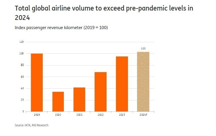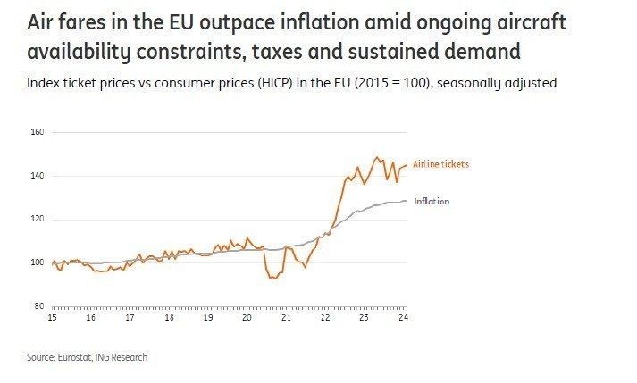«Ο παγκόσμιος στόλος των αεροπορικών εταιρειών δεν έχει καταφέρει να συμβαδίσει με τη ζήτηση και αυτό το φαινόμενο δεν έχει τελειώσει ακόμη», έγραψαν στην έκθεση τους οι αναλυτές της ING, Ρίκο Λούμαν και Ολέκσι Σορόκα. «Στο πλαίσιο των περιορισμών της χωρητικότητας, η τιμολογιακή δύναμη παραμένει στα χέρια των αερομεταφορέων», συμπλήρωσαν.