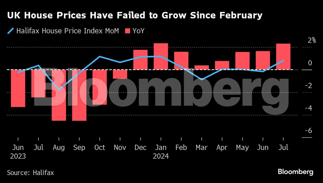 Η Halifax δήλωσε ότι η μέση τιμή ενός τυπικού σπιτιού στο Ηνωμένο Βασίλειο αυξήθηκε κατά 0,8% τον Ιούλιο στις 291.268 λίρες Αγγλίας (370.040 δολάρια), αφού δεν είχε μεταβληθεί τους προηγούμενους τρεις μήνες. Επιβεβαιώνει τα στοιχεία που αναφέρθηκαν νωρίτερα από την Nationwide Building Society, σύμφωνα με τα οποία οι τιμές αυξήθηκαν κατά 0,3% τον μήνα.