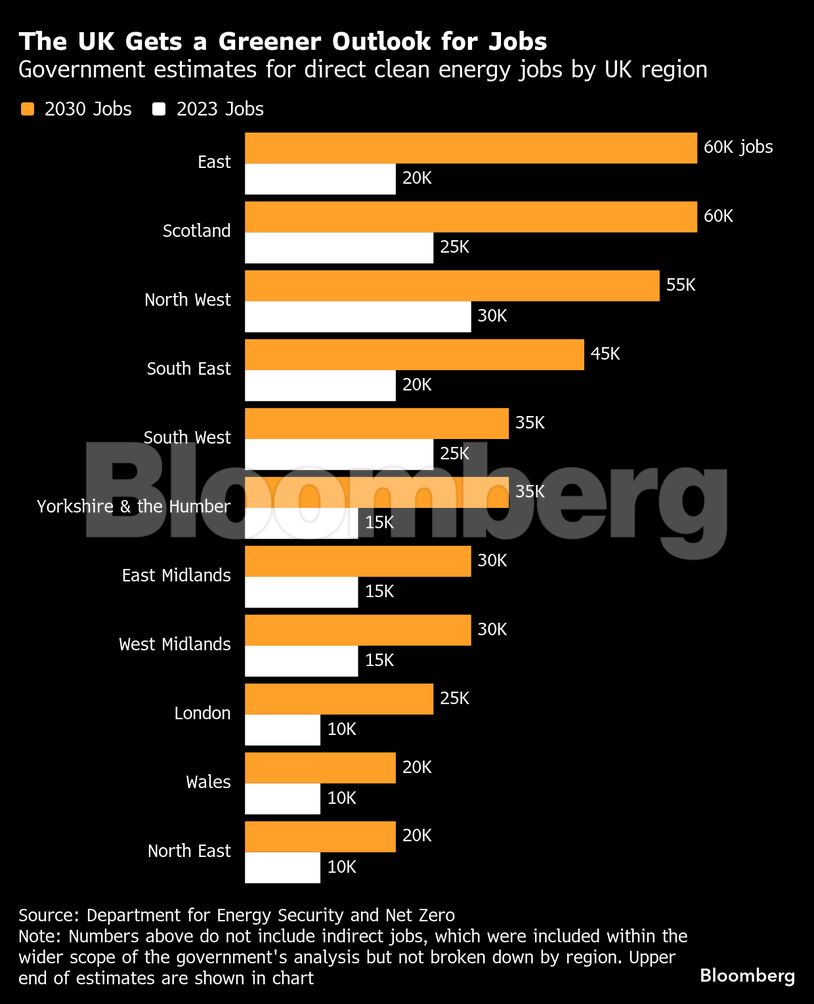 Η προσπάθεια του Ηνωμένου Βασιλείου να απανθρακοποιήσει το ενεργειακό του σύστημα έως το τέλος της δεκαετίας θα δώσει τη μεγαλύτερη ώθηση στην απασχόληση στην Ανατολική Αγγλία και τη Σκωτία.