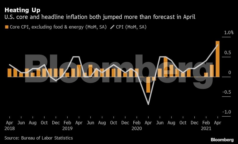 Σε ετήσια βάση ο πληθωρισμός αυξήθηκε στο 4,2%, τον Απρίλιο. Όπως αναφέρει το Bloomberg παρότι οι αξιωματούχοι της Fed και οι αναλυτές κάνουν λόγο για προσωρινή αύξηση δεν είναι σαφές εάν αυτή η άνοδος είναι ενδεικτική μιας πιο ανθεκτικής αύξησης των πληθωριστικών πιέσεων με φόντο το αυξανόμενο κόστος των εμπορευμάτων, τα τρισεκατομμύρια δολάρια της κυβερνητικής οικονομικής στήριξης και τα προκαταρκτικά σημάδια αύξησης του κόστους εργασίας.