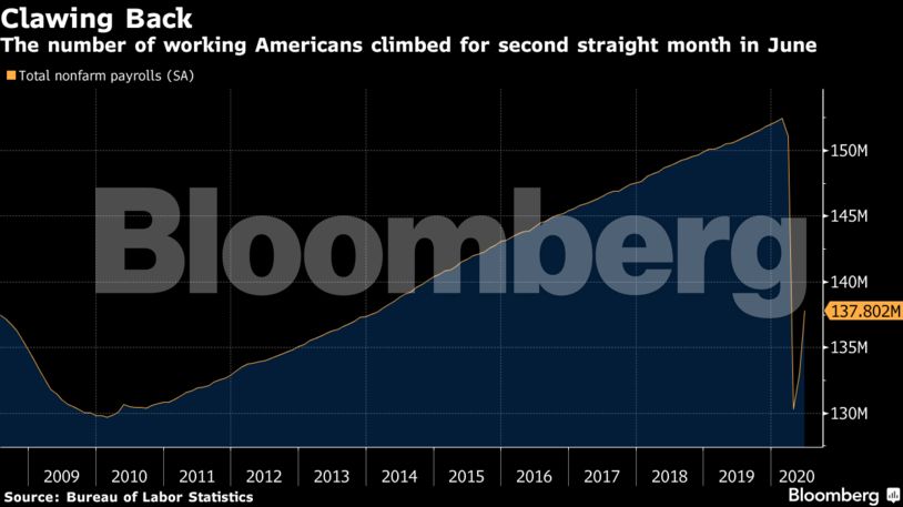 Τα μισθολόγια αυξήθηκαν κατά 4,8 εκατ. τον Ιούνιο έναντι των αναθεωρημένων στοιχείων για αύξηση κατά 2,7 εκατ. τον προηγούμενο μήνα, σύμφωνα με σημερινή έκθεση του υπουργείου Εργασίας. Το ποσοστό ανεργίας μειώθηκε για δεύτερο μήνα στο 11,1%. Ποσοστό πολύ υψηλότερο από τα χαμηλά που κατέγραφε η ανεργία στη χώρα την περίοδο πριν την πανδημία όταν διαμορφώνονταν στο 3,5%.
