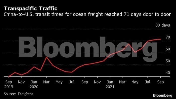 Σύμφωνα με την εταιρεία online shipping «Freightos», με έδρα στο Χονγκ Κονγκ, αυτή τη στιγμή ο χρόνος μεταφοράς φορτίων από την Κίνα στις ΗΠΑ φτάνει τις 71 μέρες (από πόρτα σε πόρτα), ενώ πριν δύο χρόνια δεν ξεπερνούσε τις 40 μέρες.