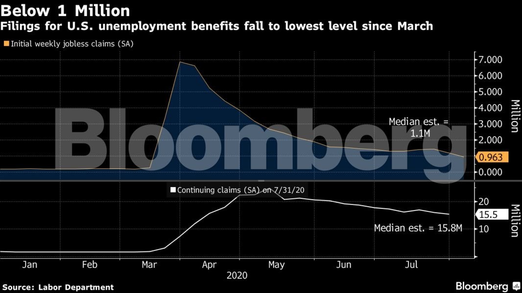 Ο αριθμός των Αμερικανών που έκαναν αίτηση για επιδόματα ανεργίας μειώθηκε κάτω από το 1 εκατομμύριο για πρώτη φορά από την έναρξη της πανδημίας τον Μάρτιο, υποδηλώνοντας ότι η οικονομική ανάκαμψη κερδίζει δυναμική εν μέσω της επιβράδυνσης στις μολύνσεις από κορωνοϊούς.