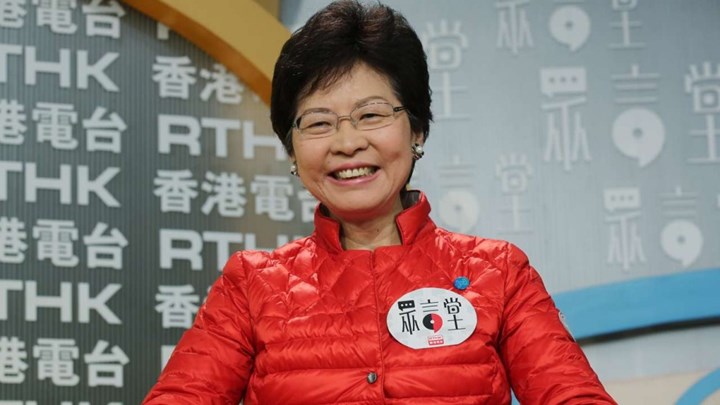 Στη Λαμ επιβλήθηκαν κυρώσεις επειδή είναι «άμεσα υπεύθυνη για την εφαρμογή των πολιτικών του Πεκίνου που αφορούν την καταστολή της ελευθερίας και των δημοκρατικών διαδικασιών», αναφέρεται στην ανακοίνωση του υπουργείου.