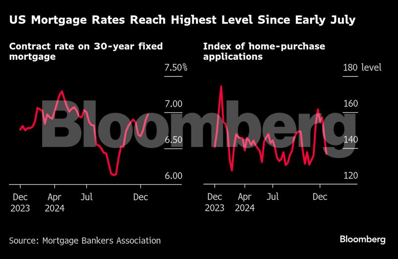 Σε άλλα στοιχεία που ανακοινώθηκαν σήμερα και τα οποία επικαλείται το Bloomberg, τα επιτόκια των ενυπόθηκων δανείων στις ΗΠΑ «σκαρφάλωσαν» σε υψηλό σχεδόν έξι μηνών κατά τη διάρκεια της εβδομάδας των εορτών των Χριστουγέννων, περιορίζοντας τις αιτήσεις για αγορά κατοικίας και υποβαθμίζοντας σοβαρά τη δραστηριότητα αναχρηματοδότησης.